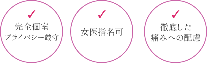 当院では、治療の痛みを最小限に抑える為に局所麻酔を必ず行い、女性スタッフ同席のもと施術をさせていただいております。